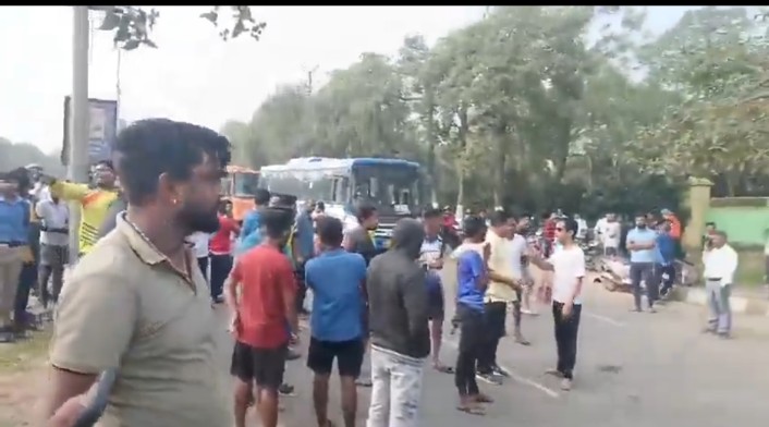 ଭୁବନେଶ୍ବର : ନନ୍ଦନକାନନ ଥାନା ରଘୁନାଥପୁରରେ ମୋ ବସ ଦୁର୍ଘଟଣା ଘଟାଇ ଜଣେ ୧୨ ବର୍ଷୀୟ ଝିଅର ମୃତ୍ୟୁ ହୋଇଥିବା ଜଣାପଡ଼ିଛି। ଝିଅଟି ସାଇକଲରେ ଯାଉଥିବାବେଳେ ତାକୁ ମୋ ବସ ଧକ୍କା ଦେଇଥିଲା। ଘଟଣାସ୍ଥଳରେ ତାର ମୃତ୍ୟୁ ହୋଇଯାଇଥିଲା। ଦୂର୍ଘଟଣା କୁ ନେଇ ଉତ୍ତେଜନା ପ୍ରକାଶ ପାଇଛି। ସ୍ଥାନୀୟ ଲୋକେ ୩ଟି ବସ ଅଟକ ରଖିଥିବା ସୂଚନା ମିଳିଛି। ରାସ୍ତାରେ ବାଉଁଶ ପକାଇ ନନ୍ଦନକାନନ ପଟିଆ ରାସ୍ତା ଅବରୋଧ କରାଯାଇଛି।