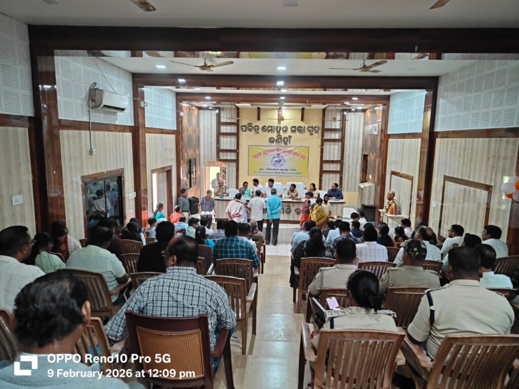 ଅନୁଗୋଳ(୦୯/୦୨/୨୬) : ଜିଲ୍ଲାପାଳ ଶ୍ରୀ ଅବଦାଲ୍ ମହମ୍ମଦ ଅଖତରଙ୍କ ଅଧ୍ୟକ୍ଷତାରେ ପବିତ୍ର ମୋହନ ସଭାଗୃହ କଣିହାଁ ( ଠାରେ ଜିଲ୍ଲା ସ୍ତରୀୟ ମିଳିତ ଜନଶୁଣାଣି କାର୍ଯ୍ୟକ୍ରମ ଅନୁଷ୍ଠିତ ହୋଇଯାଇଛି । ଜନଶୁଣାଣି ଶିବିରରେ ସମୁଦାୟ ୩୪ଟି ଅଭିଯୋଗ ଗ୍ରହଣ କରାଯାଇଥିଲା ।
