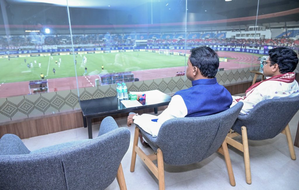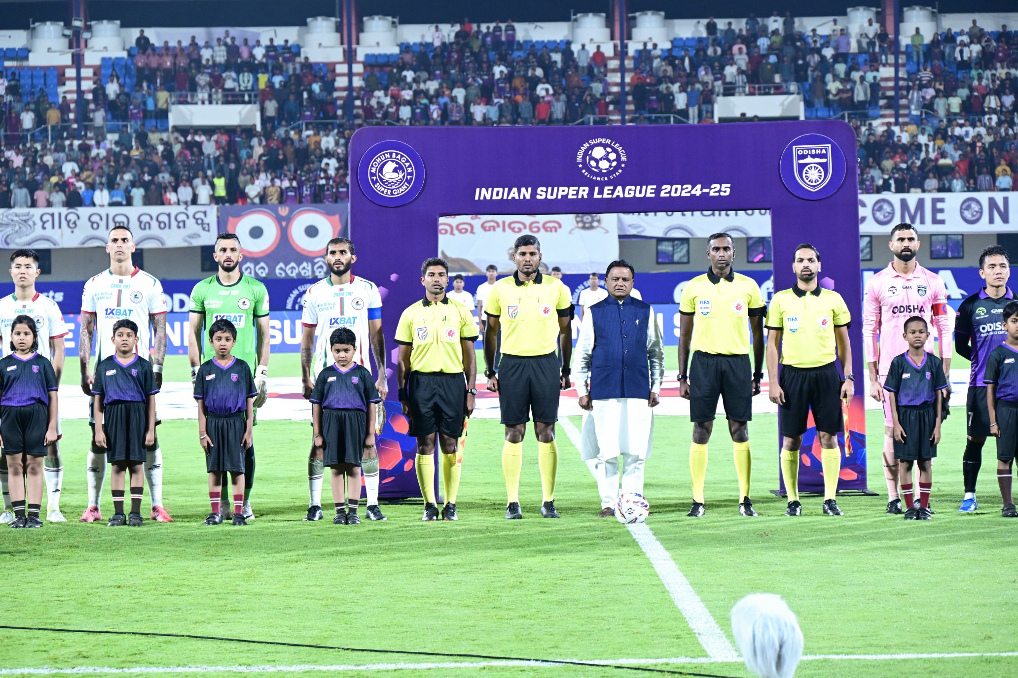 ମୁଖ୍ୟମନ୍ତ୍ରୀ ଶ୍ରୀ ମୋହନ ଚରଣ ମାଝୀ, କଳିଙ୍ଗ ଷ୍ଟାଡିୟମରେ ଆୟୋଜିତ ଇଣ୍ଡିଆନ ସୁପର ଲିଗ୍ର ଓଡ଼ିଶା ଫୁଟ୍ବଲ କ୍ଲବ୍ ଏବଂ କୋଲ୍କାତା ମୋହନ ବାଗନ୍ ସୁପର ଜ୍ୟାଣ୍ଟ ମଧ୍ୟରେ ଅନୁଷ୍ଠିତ ମ୍ୟାଚରେ ଉପସ୍ଥିତ ରହି ଖେଳାଳୀ ଓ ଫୁଟବଲ୍ ପ୍ରେମୀଙ୍କୁ ଉତ୍ସାହିତ କରୁଛନ୍ତି।
