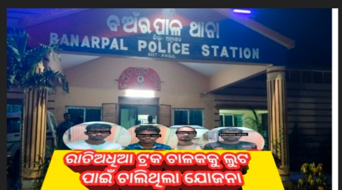 ଅନୁଗୋଳ ଜିଲ୍ଲା ବଅଁରପାଳ ଥାନା ଅନ୍ତର୍ଗତ ଟେଣ୍ଟୋଇ ଗ୍ରାମର ଏକ ପଡିଆ ରେ ରାତି ଅଧରେ ଗାଡି ଚାଳକକୁ ଲୁଟ କରିବା ପାଇଁ ଯୋଜନା ସମୟରେ ଚାରି ଯୁବକଙ୍କୁ କାବୁ କରିଥିବା ବେଳେ ଜଣେ ଯୁବକ ପୋଲିସ ହାତରୁ ଚମ୍ପଟ ମାରିବାରେ ସଫଳ ହୋଇଥିଲା। ଗିରଫ ଅଭିଯୁକ୍ତ ମାନେ ହେଲେ ଟୁଟୁ @ ସୁବ୍ରତ ନାଏକ (ଟୁଟୁ ), ପ୍ରୀତମ ନାଇଲ (ଇଲୁ) , ସୁବ୍ରତନାୟକ (ଭିକି) ଶିବାନନ୍ଦ ନାଏକ (ନାହିଆ) ସମସ୍ତଙ୍କ ଗ୍ରାମ ଟେଣ୍ଟୋଲୋଇ। ପୋଲିସ ର ସୂଚନା ମୁତାବକ ଟେଣ୍ଟଲୋଇ ଗ୍ରାମର ଦୁଷ୍ମନ୍ତ ନାଏକ ତତ୍ତ୍ଵାବଧାନରେ ଟେଣ୍ଟୋଇ, ଟେଣ୍ଟୋଲୋଇ, ପିଙ୍ଗୁଆ, ଖମାନା ଏବଂ କୁଶପାଙ୍ଗୀ ଅଞ୍ଚଳ ଦେଇ ତାଳଚେର ଅଭିମୁଖେ ଯାଉଥିବା ଟ୍ରକ ଚାଳକଙ୍କୁ ଡକାୟତ ପାଇଁ ଚାରି ଅଭିଯୁକ୍ତଙ୍କୁ ନେଇ ଯୋଜନା କରୁଥିଲେ। ପୋଲିସ ବିଶେଷ ସୂତ୍ରରୁ ଖବର୍ ପାଇ ଅଚାନକ଼ ଚଢାଉ କରି ଚାରି ଅଭିଯୁକ୍ତଙ୍କୁ ମାଡି ବସିଥିବା ବେଳେ ଦୁଷ୍ମନ୍ତ ସେଠାରୁ ଚମ୍ପଟ ମାରିଥିଲା। ଘଟଣାସ୍ଥଳରୁ ଅଭିଯୁକ୍ତ ମାନେ ବ୍ୟବହାର ପାଇଁ ରଖିଥିବା ତେଲେଙ୍ଗାନା କାତି ଏବଂ ଫାର୍ସା ଜବତ କରିଥିଲା। ଗିରଫ ଅଭିଯୁକ୍ତ ମାନଙ୍କ ନାମରେ ଏସଆଇ ଅର୍ଚନା ନାୟକ ମାମଲା ରୁଜୁ କରି ଆଜି କୋର୍ଟଚାଲାଣ କରିଛନ୍ତି ।