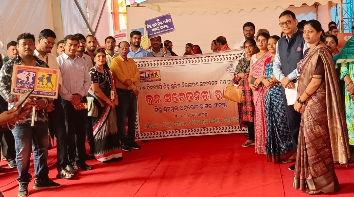 ଶ୍ରମିକ ନିରାକରଣ ସଚେତନତା ପକ୍ଷ ପାଳନ ନିମନ୍ତେ ଏକ ଜନ ସଚେତନତା ପଦଯାତ୍ରା ଅନୁଗୋଳ ଉଚ୍ଚ ବିଦ୍ୟାଳୟ ଖେଳ ପଡିଆଠାରେ ଆୟୋଜିତ ହୋଇଥିବା ବିକାଶ ମେଳା ଠାରୁ ବାହାରି