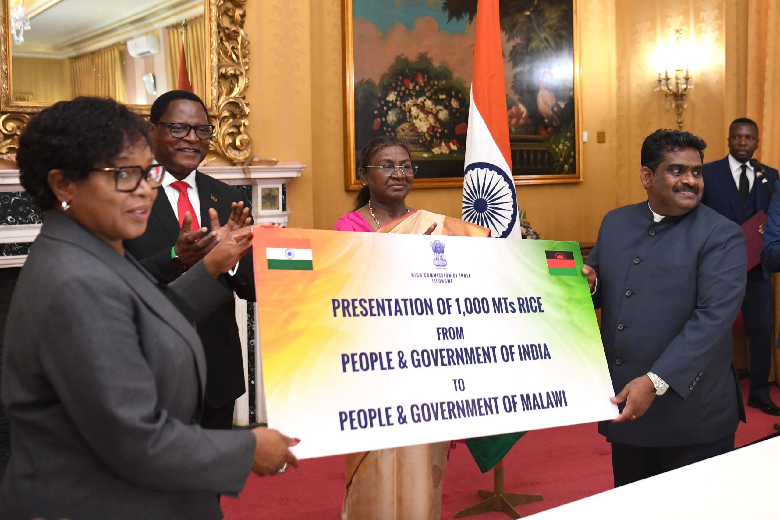 राष्ट्रपति के समक्ष कला और संस्कृति, युवा कार्यक्रम, खेल और फार्मास्युटिकल सहयोग पर समझौता ज्ञापनों पर हस्ताक्षर किए गए। वह भारत की ओर से मलावी को प्रतीकात्मक रुप से मानवीय सहायता के रूप में 1000 मीट्रिक टन चावल सौंपे जाने और मलावी को भाभाट्रॉन कैंसर उपचार मशीन सौंपे जाने की भी साक्षी बनीं। उन्होंने मलावी में एक स्थायी कृत्रिम अंग फिटमेंट सेंटर (जयपुर फुट) की स्थापना में भारत सरकार के समर्थन की भी घोषणा की।