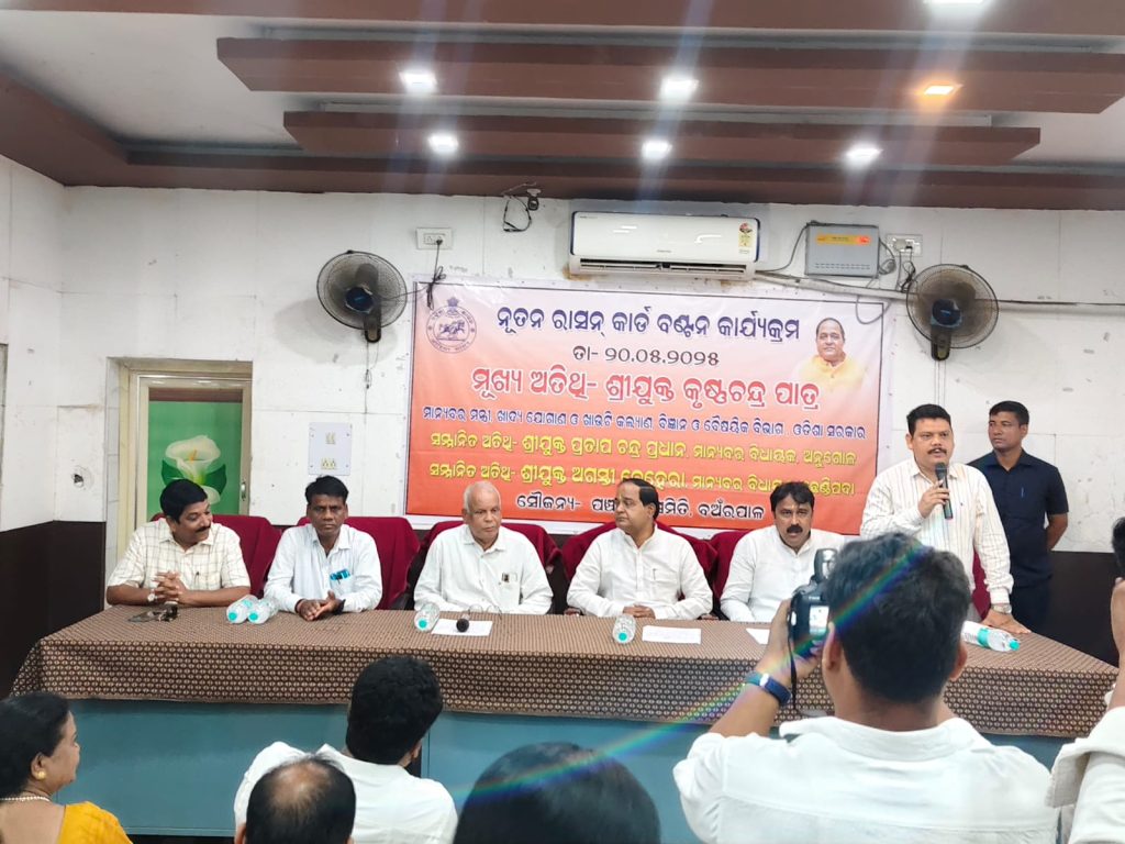 ଅନୁଗୋଳ ଜିଲ୍ଲା ବଅଁରପାଳ ବ୍ଲକ ରେ ଆଜି ଖାଦ୍ୟ ଯୋଗାଣ ଓ ଖାଉଟି କଲ୍ୟାଣ, ବିଜ୍ଞାନ ଓ ବୈଷୟିକ ବିଭାଗ ମନ୍ତ୍ରୀ କୃଷ୍ଣ ଚନ୍ଦ୍ର ପାତ୍ର ଙ୍କ ଦ୍ଵାରା ବ୍ଲକ ସଭାଘରେ ୩୫ଟି ନୂତନ ରାସନ କାଡ ବଣ୍ଟନ କରାଯାଇଥିଲା।