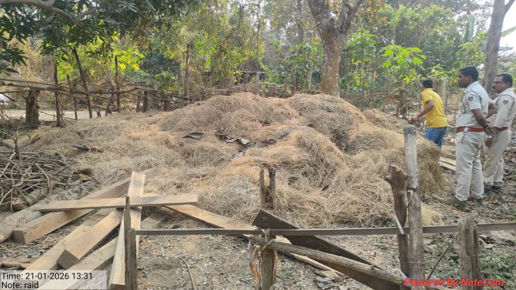ଅନୁଗୁଳ (୨୨/୧/୨୦୨୬) ଡେରା ସେକ୍ସନର କର୍ମଚାରୀମାନେ ନିର୍ଭରଯୋଗ୍ୟ ସୂଚନା ଆଧାରରେ ତାଳଚେର ରେଞ୍ଜର ଡେରା ସେକ୍ସନର କନ୍ଧବାରେଣୀ ବିଟ୍ ଅନ୍ତର୍ଗତ ଧୋବାପାଳ ଗ୍ରାମରେ ଏକ ଅଚାନକ ଘର ଚଢାଉ କରିଥିଲେ।