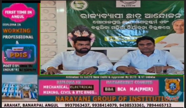 ଅନୁଗୁଳ – ରାଜ୍ୟରେ ଛାତ୍ରୀମାନଙ୍କୁ ଅସଦାଚରଣ , ଦୁଷ୍କର୍ମ, ହତ୍ୟା ଭଳି ଘଟଣା ଅହେତୁକ ବୃଦ୍ଧି ପାଇଥିବା ବେଳେ ରାଜ୍ୟ ବିଜେପି ସରକାର ନୀରବଦ୍ରଷ୍ଟା ସାଜିଛନ୍ତି ବୋଲି ଅଭିଯୋଗ କରି ବିଜୁ ଯୁବ ଓ ଛାତ୍ର ଜନତା ଦଳ ଜୁନ୍ ୨୫ ତାରିଖ ଦିନ ରାଜ୍ୟବ୍ୟାପୀ ଛାତ୍ର ଆନ୍ଦୋଳନର ଡାକରା ଦେଇଛି ।ଏହି ପରିପ୍ରେକ୍ଷୀରେ ଅନୁଗୁଳ ଜିଲ୍ଲା ମଧ୍ୟ ଆନ୍ଦୋଳନ ହେବ । ଏକ ସାମ୍ୱାଦିକ ସମ୍ମିଳନୀରେ, ବିଜୁ ଜନତା ଦଳର ଛାତ୍ର ସଭାପତି ରାଜୀବ ଲୋଚନ ଦାସ ସୂଚନା ଦେଇଛନ୍ତି । ରାଜ୍ୟର ବିପର୍ଯ୍ୟସ୍ତ ଆଇନ ଶୃଙ୍ଖଳା ନେଇ ରାଜ୍ୟ ସରକାରଙ୍କ ଉପରେ ସେ ବର୍ଷିବା ସହିତ ଜୁନ୍ ୨୫ ତାରିଖରେ ବିଜେଡି ତରଫରୁ ଜିଲ୍ଲାରେ ଆନ୍ଦୋଳନ ସମ୍ପର୍କରେ ସୂଚନା ଦେଇଥିଲେ ।