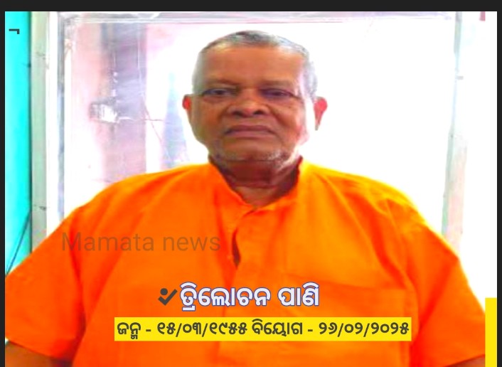 ଅନୁଗୋଳ ଜିଲ୍ଲା ବଅଁରପାଳ ଥାନା ନିକଟ ନୂଆହତା ପଞ୍ଚାୟତର ତ୍ରିଲୋଚନ ପାଣି ନାମକ ବ୍ୟକ୍ତିଙ୍କ ହୃଦଘାତରେ ପରଲୋକ ହୋଇଯାଇଛି। ଶ୍ରୀ ପାଣି ୭୦ ବୟସରେ ମୃତ୍ୟୁ ଘଟିଛି। ବଅଁରପାଳ ଅଞ୍ଚଳରେ ଜଣେ ଖାଦ୍ୟ ସମାଗ୍ରୀ ହୋଲସେଲ ବ୍ୟବସାୟ କରନ୍ତି ଓ ଗ୍ରାମରେ ଗାୟତ୍ରୀ ଅନୁଷ୍ଠାନର ଆଗଧାଡିର କର୍ମକର୍ତ୍ତା ଥିଲେ। ଶିବରାତ୍ରି ରାତି ପ୍ରାୟ ୯ ଘଟିକା ସମୟରେ ହୃଦଘାତ ଘଟିଥିଲା। ମୃତ୍ୟୁ ବେଳକୁ ତାଙ୍କ ପାଖରେ ପୁଅ ବହୁ ନାତି ନାତୁଣୀ, ଧର୍ମପତ୍ନୀ ପରିବାରବର୍ଗ ଉପସ୍ଥିତ ଥିଲେ। ଶ୍ରୀ ପାଣିଙ୍କ ମୃତ୍ୟୁକୁ ନେଇ ଗ୍ରାମରେ ଶୋକାକୁଳ ପରିବେଶ ଖେଳିଯାଇଛି। ତାଙ୍କ ଅନ୍ତିମ ସତ୍କାର ପରିବାରବର୍ଗ ଓ ଗ୍ରାମବାସୀ ଙ୍କ ଦ୍ଵାରା ଆଜି ପୁରୀ ସ୍ଵର୍ଗଦ୍ଵାର ରେ କରାଯିବ।