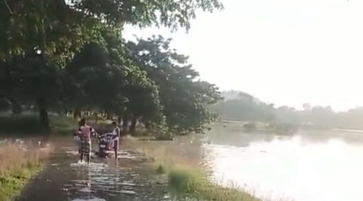 ରାସ୍ତା ଉପରେ ଚାରି ଫୁଟର ପାଣି