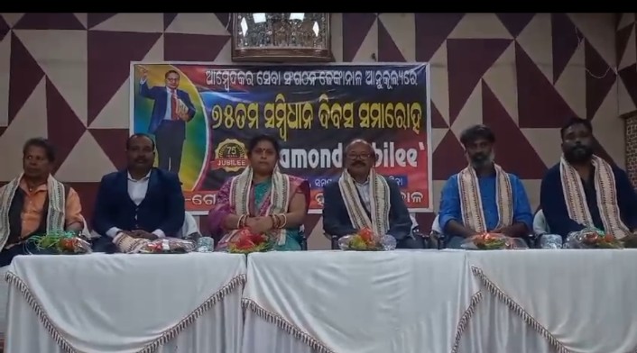 ଢେଙ୍କାନାଳ : ମଙ୍ଗଳବାର ଦିନ ଗୋପବନ୍ଧୁ ଟାଉନ ହଲ ଢେଙ୍କାନାଳ ଠାରେ ଆମ୍ବେଦକର ସେବା ସଂଗଠନ ଢେଙ୍କାନାଳ ଆନୁକୂଲ୍ୟରେ ୭୫ତମ ସମ୍ବିଧାନ ଦିବସ ପାଳିତ ହୋଇ ଯାଇଛି।ଏହି ୭୫ବର୍ଷର ପୂର୍ତ୍ତି କୁ ହୀରକ ଜୟନ୍ତୀ ଭାବରେ ସାରା ଭାରତରେ ପାଳିତ ହେଉଛି। ୭୫ବର୍ଷ ବିତି ଯାଇଥିଲେ ମଧ୍ୟ ସମ୍ବିଧାନ ସମ୍ପର୍କ ରେ ଅଧିକାଂଶ ଲୋକ ଜାଣିନାହାନ୍ତି, କିଛି ଲୋକ ସମ୍ବିଧାନ ପୁସ୍ତକ ମଧ୍ୟ ଦେଖି ନାହାନ୍ତି।ଜାତି ଧର୍ମ, ବର୍ଣ୍ଣ, ଲିଙ୍ଗ, ଜନ୍ମସ୍ଥାନ ନିର୍ବିଶେଷରେ ସମ୍ବିଧାନ ସମସ୍ତଙ୍କୁ ସମାନ ସୁଯୋଗ ଓ ସୁବିଧା ଦେଇଛି।