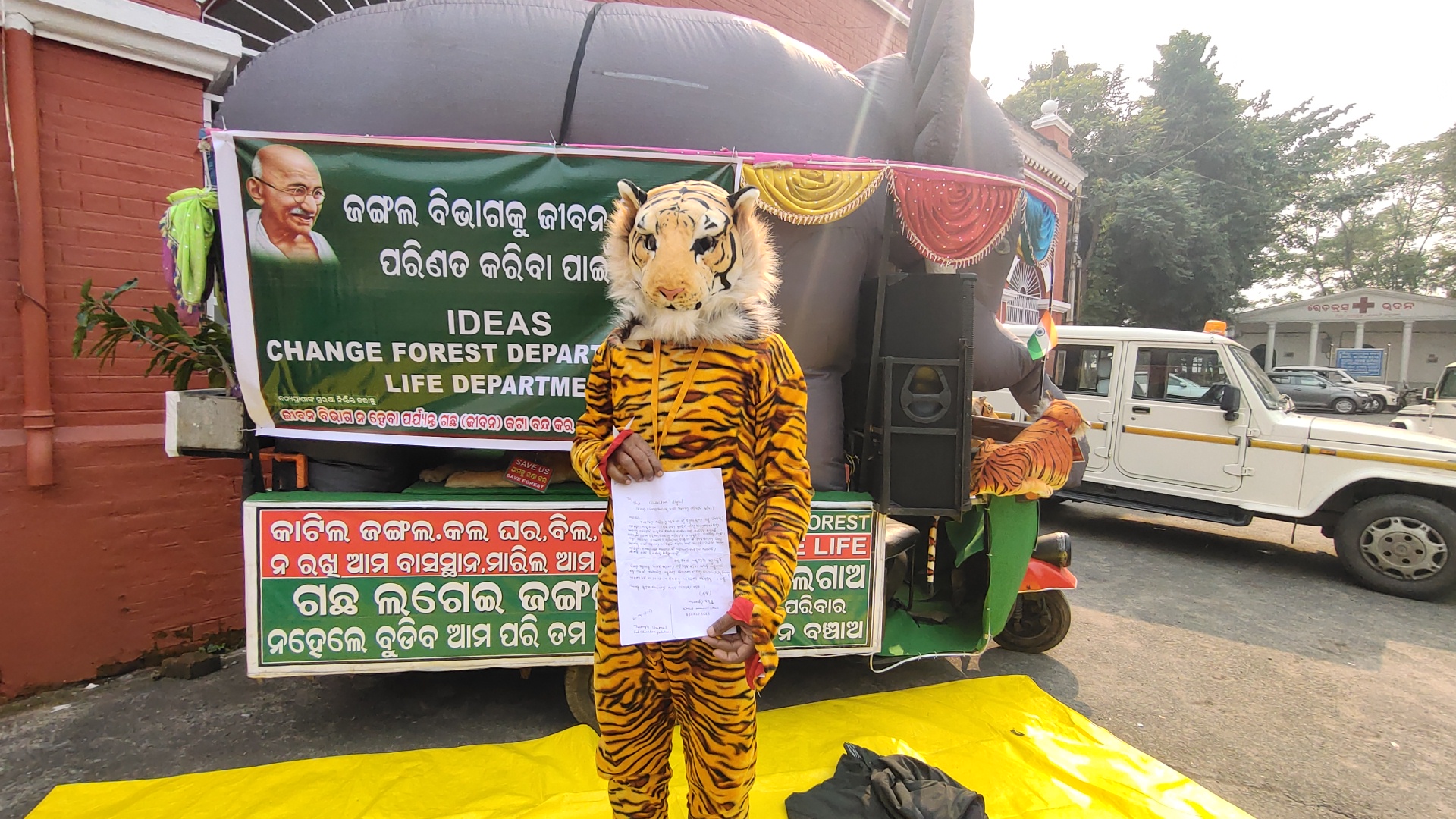 ଅନୁଗୋଳ ଜିଲ୍ଲା ର ପାଲଲହଡ଼ା ବ୍ଲକ ଉଦୟପୁର ଅଞ୍ଚଳର ଦିଲ୍ଲୀପ କୁମାର ସାହୁ ବାଘ ସଦୃଶ ପୋଷାକ ପିନ୍ଧି ଜିଲ୍ଲାପାଳଙ୍କ କାର୍ଯ୍ୟଳୟ ପରିସରରେ ଜଙ୍ଗଳ ବିଭାଗ କୁ ଜୀବନ ବିଭାଗରେ ପରିବର୍ତ୍ତନ କରିବା ପାଇଁ ଧାରଣା ଦେଇଛନ୍ତି। ସୂଚନା ଯେ, ଦିଲ୍ଲୀପ କୁମାର ସାହୁ ଏକ ହାତୀ ସୁସଜ୍ଜିତ ଗାଡ଼ିରେ ବନ୍ୟପ୍ରାଣୀ ବେଷରେ ଜଳବାୟୁ ପରିବର୍ତ୍ତନ ଓ ପ୍ରାକୃତିକ ବିପର୍ଯ୍ୟୟ ରୋକିବା ପାଇଁ ସଚେତନତା କହୁଛନ୍ତି। ଗତ ୨୬ ତାରିଖ ଦିନ ପାଲଲହଡ଼ା ଉପଜିଲ୍ଲାପାଳ ଙ୍କ ଜରିଆରେ ଦେଶର ପ୍ରଧାନମନ୍ତ୍ରୀ ଓ ରାଷ୍ଟ୍ରପତି ଙ୍କ ଉଦ୍ଦେଶ୍ୟରେ ଦାବିପତ୍ର ପ୍ରଦାନ କରିଛନ୍ତି। ଆସନ୍ତା ଡିସେମ୍ବର ୩୧ ତାରିଖ ମଧ୍ୟରେ ପ୍ରଶାସନ ଆଲୋଚନା ନ କଲେ। ଆସନ୍ତା ଜାନୁୟାରୀ ୧ ତାରିଖ ଠାରୁ ଅନିର୍ଦିଶ୍ଟ କଳା ଗଣଧାରଣା ଦେବା ନେଇ କହିଛନ୍ତି ଦିଲ୍ଲୀପ।